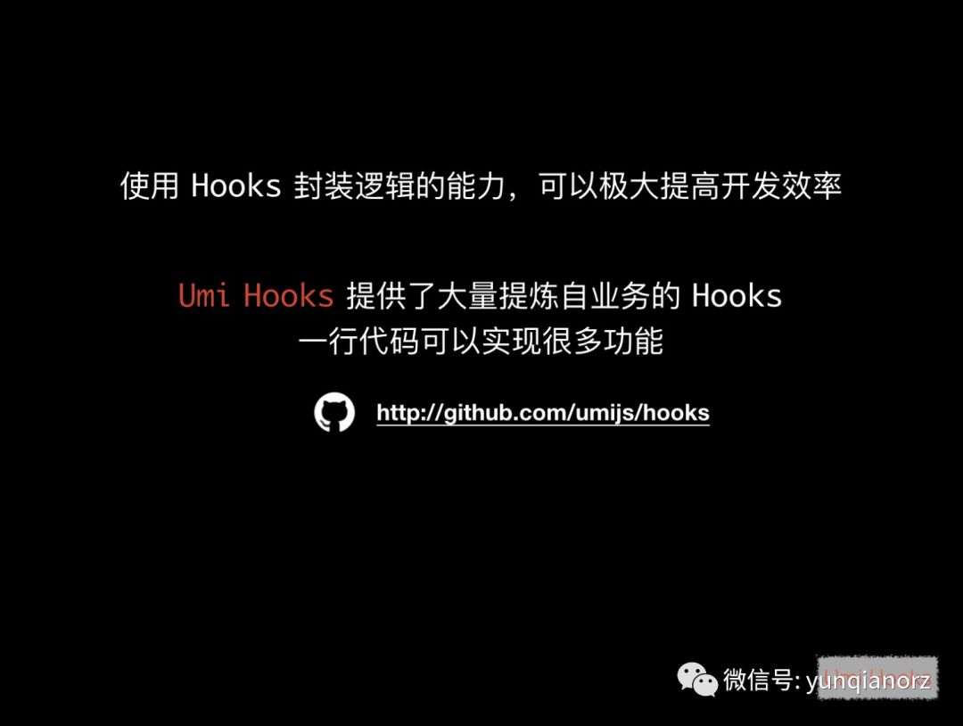 Umi Hooks,你值得拥有。 我们目前处于发展阶段,欢迎大家一起共建。 你可以提 idea,我们负责实 现。 你可以提 issue,我们负责改 bug。 你可以提 PR,将你封 装的 Hooks 分享给大家,让更多人收益。