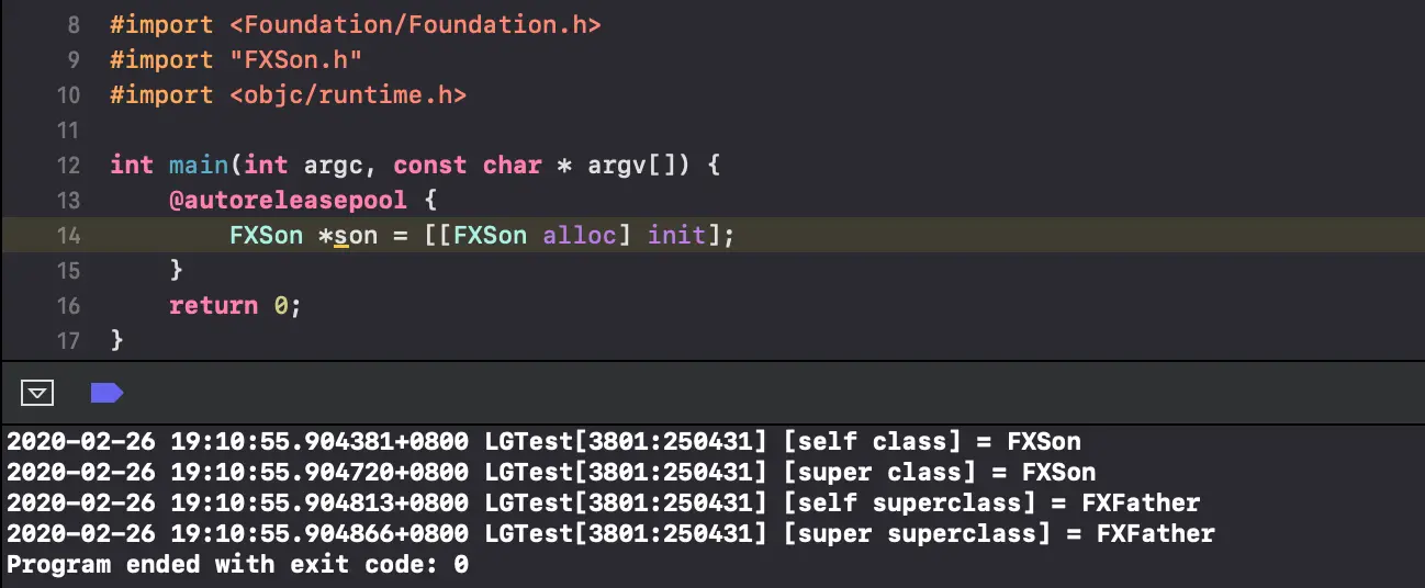 [super class]就是son跳过FXSon,直接通过FXFather->NSObject查找 - 还有比