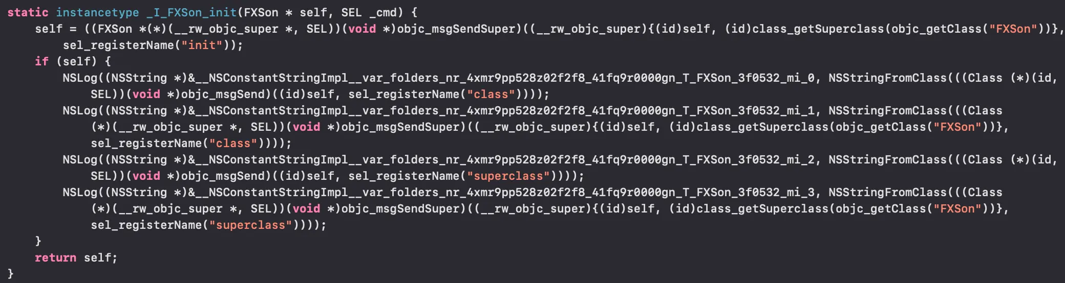 for (Class tcls = object_getClass((id)self); tcls; tcls = tcls->superclass) {