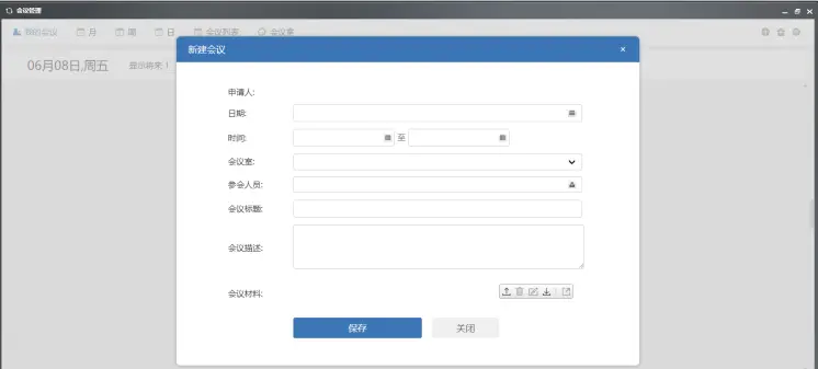 | 会议材料 | 可上传、下载、替换、删除会议材料。(注:先保存后方可上传会议材料) |