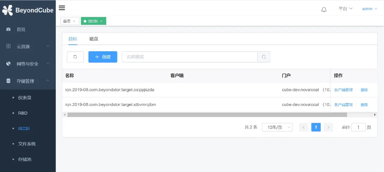 支持IP-SAN,可以通过iSCSI协议将云硬盘以IP-SAN的形式输出给前端服务器挂载。