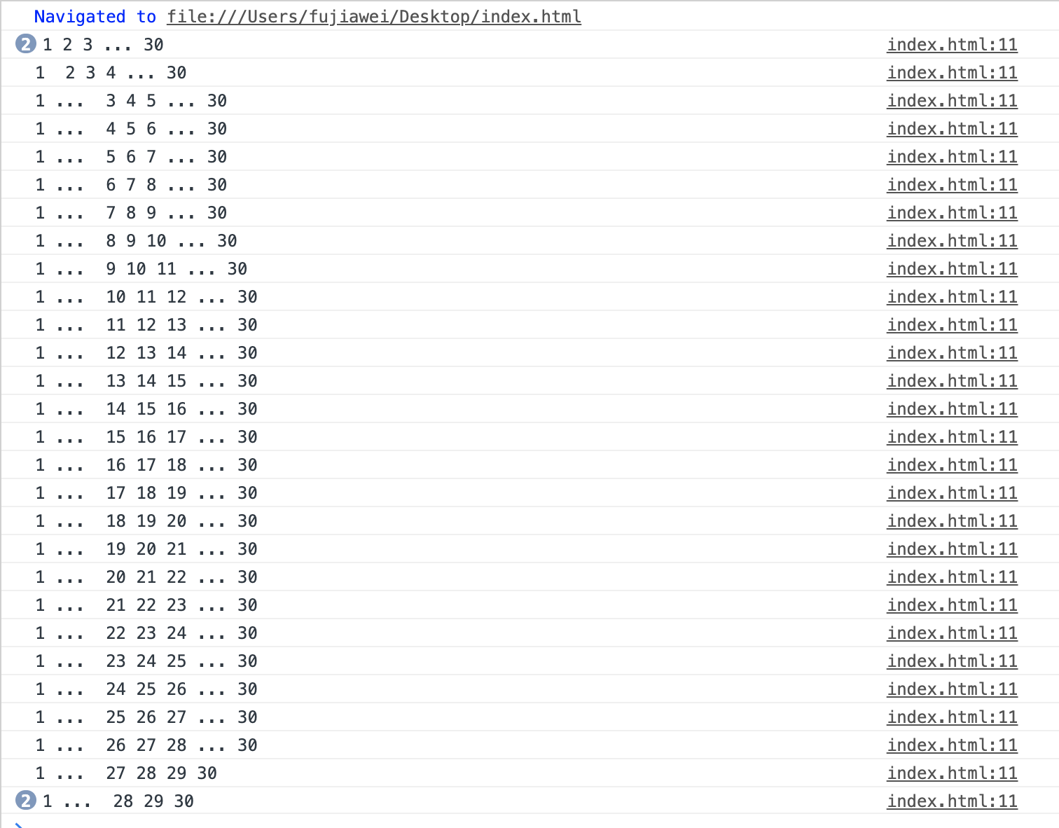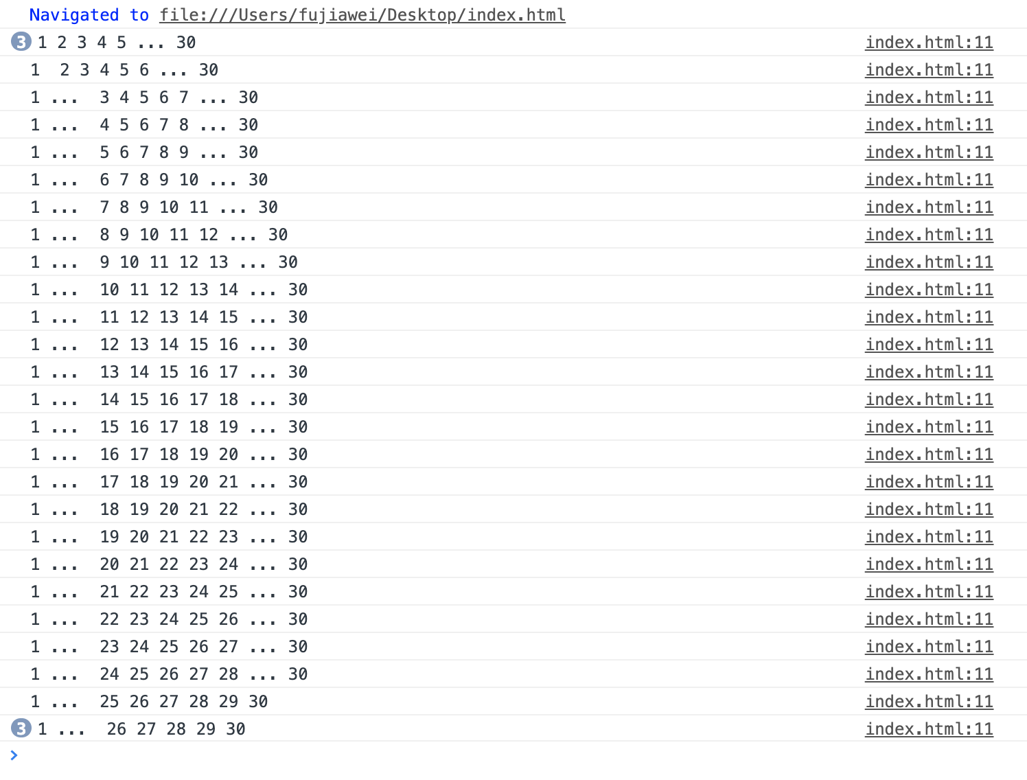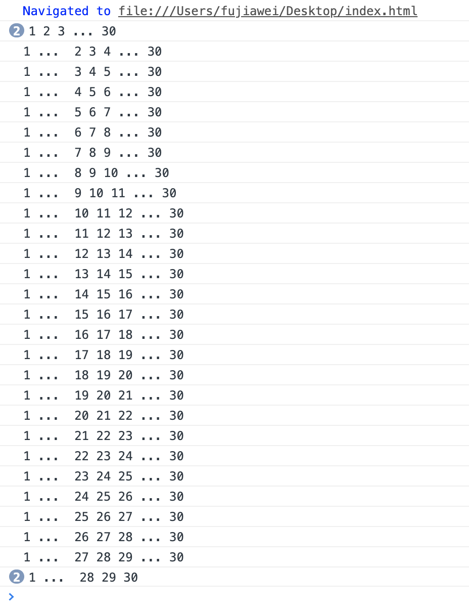 观察上面的字符串我们发现,当有两个省略号的时候,前面字符肯定是 1 ...,最后两个字符肯定是 ... 30。