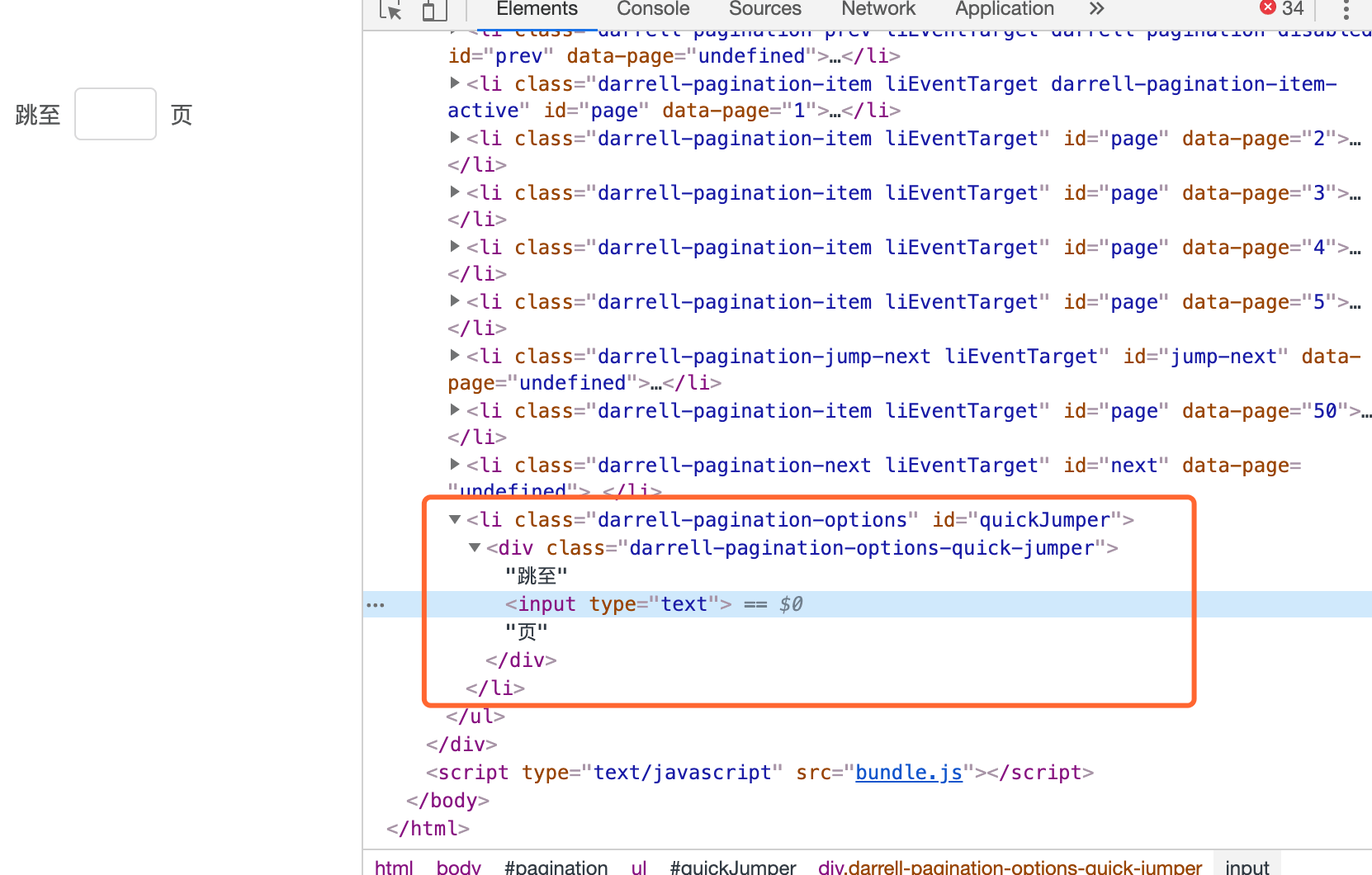 是否可以快速跳转至某页,我们要生成一个快速跳转的 dom,插入到包裹容器之中 。