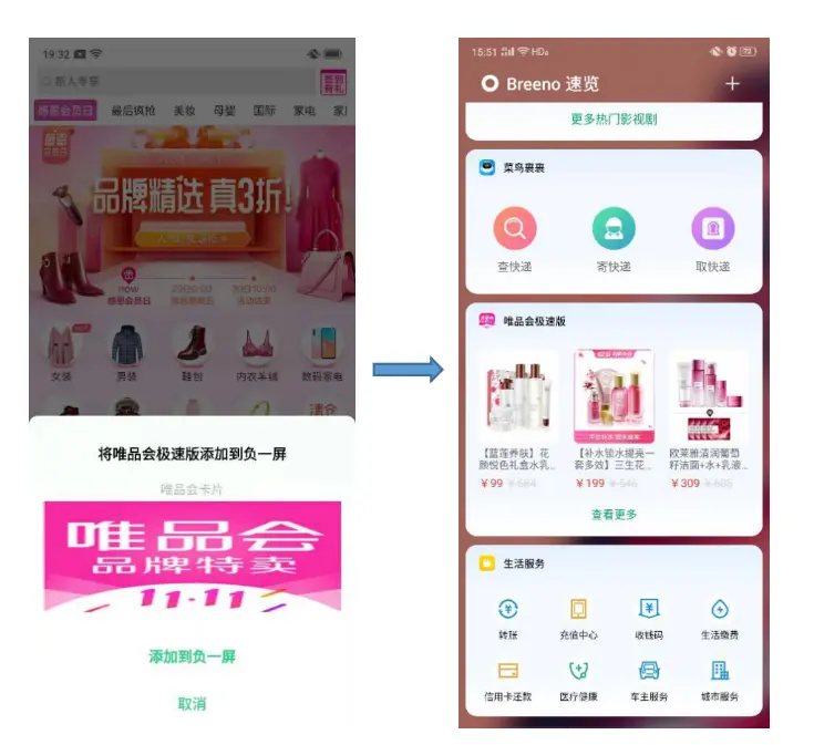 快应用内可弹窗提示用户将快应用添加到负一屏,如此一来就使快应用常驻在负一屏啦,并且相比桌面icon有着更加丰富的展示内容。