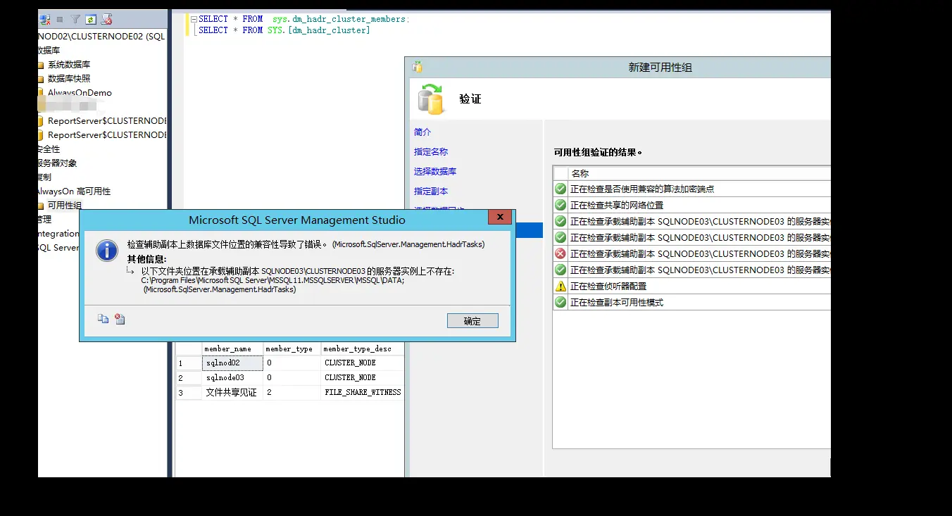- 配置Sql Server Available Group时,创建AG 提示node2上指定文件目录不存在。
