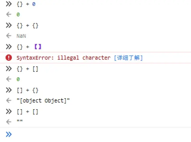 这一题里面,前面的{}依然会被当做代码块执行,+''相当于Number(''),结果为0