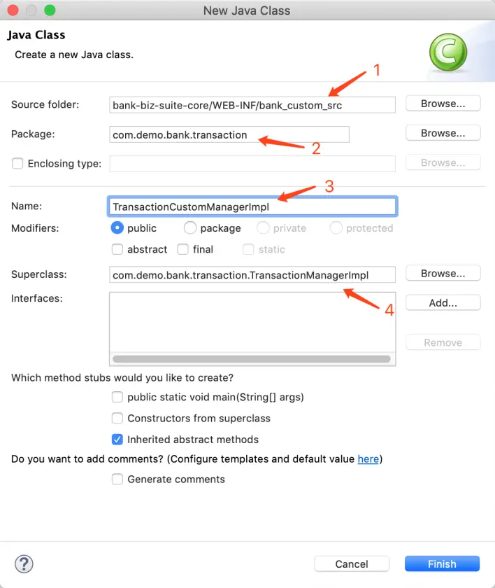 我们假设定制 “transaction”的manager,在eclipse里添加一个类即可: