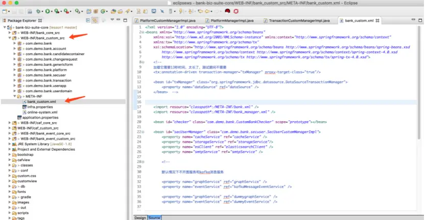 打开项目的配置文件 xxx_custom.xml, 本例中就是:“bank_custom.xml”