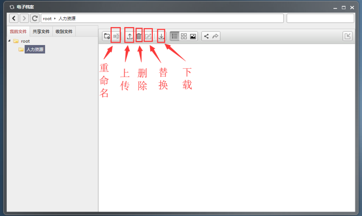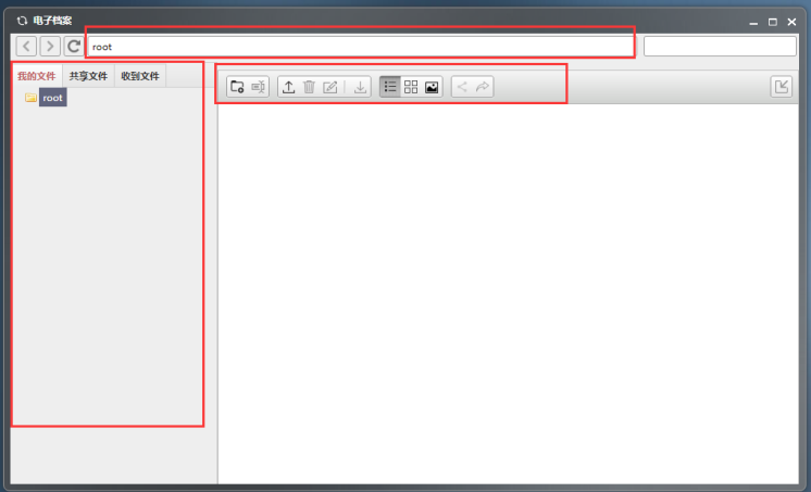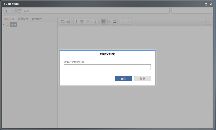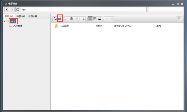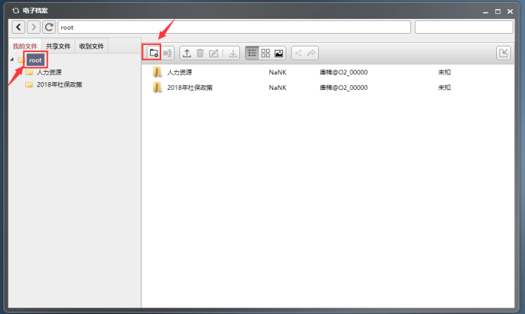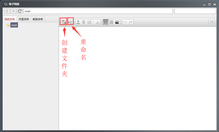 我的文件:展示自己上传的文件及文件夹。(注:添加新文件夹时,先点击root,再点击创建文件夹按钮)