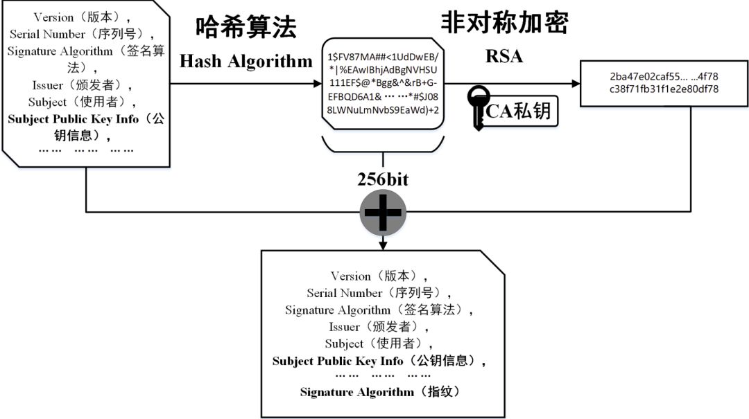 数字证书包含有行为主体信息和证书认证机构的数字签名。数字签名是指以电子形式存在,可依附在电子文件中用于辨识电子文件的签署者及表示对该电子文件内容负责所使用的电子数字标识。