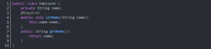#####@Required 注解有什么作用 这个注解表明bean的属性必须在配置的时候设置,通过一个bean定义的显式的属性值或通过自动装配,若@Required注解的bean属性未被设置,容器将抛出BeanInitializationException。示例: