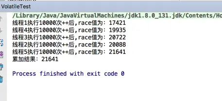 System.out.println("累加结果:"+volatileTest.getRace());