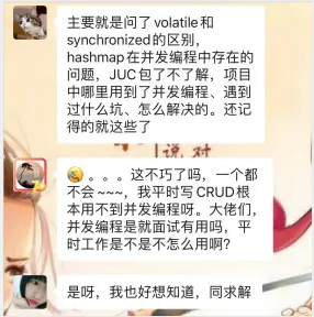 那我们来看看并发编程是否真的这么重要,为什么面试官总爱问???下面是我在技术交流群中找到的截图: