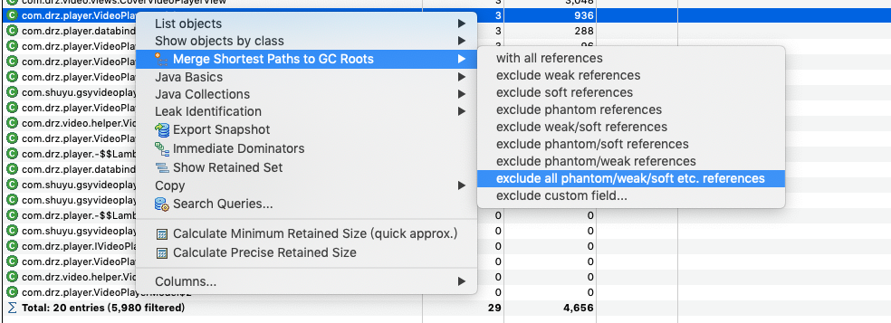 可以看到,我们的Avtivity 作为mContext 变量被我们的自定义CoverVideoPlayerView 持有了,那也就是说,因为我们的自定义View不能被gc回收,所以activity也无法被回收。