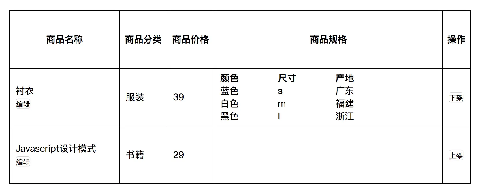 <td><button>上架</button></td>