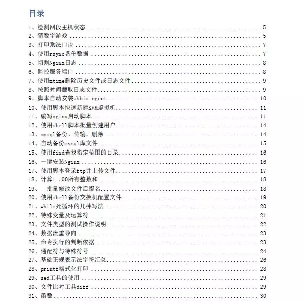 还给大家整理了一些常用的面试题和Shell编程的一些高级用法: