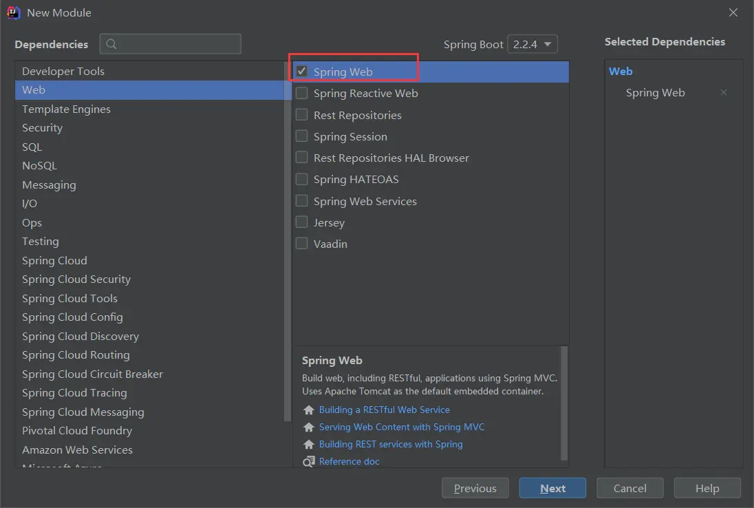 - web模块在构造的时候重复上面的步骤, 并勾选Spring Web选项