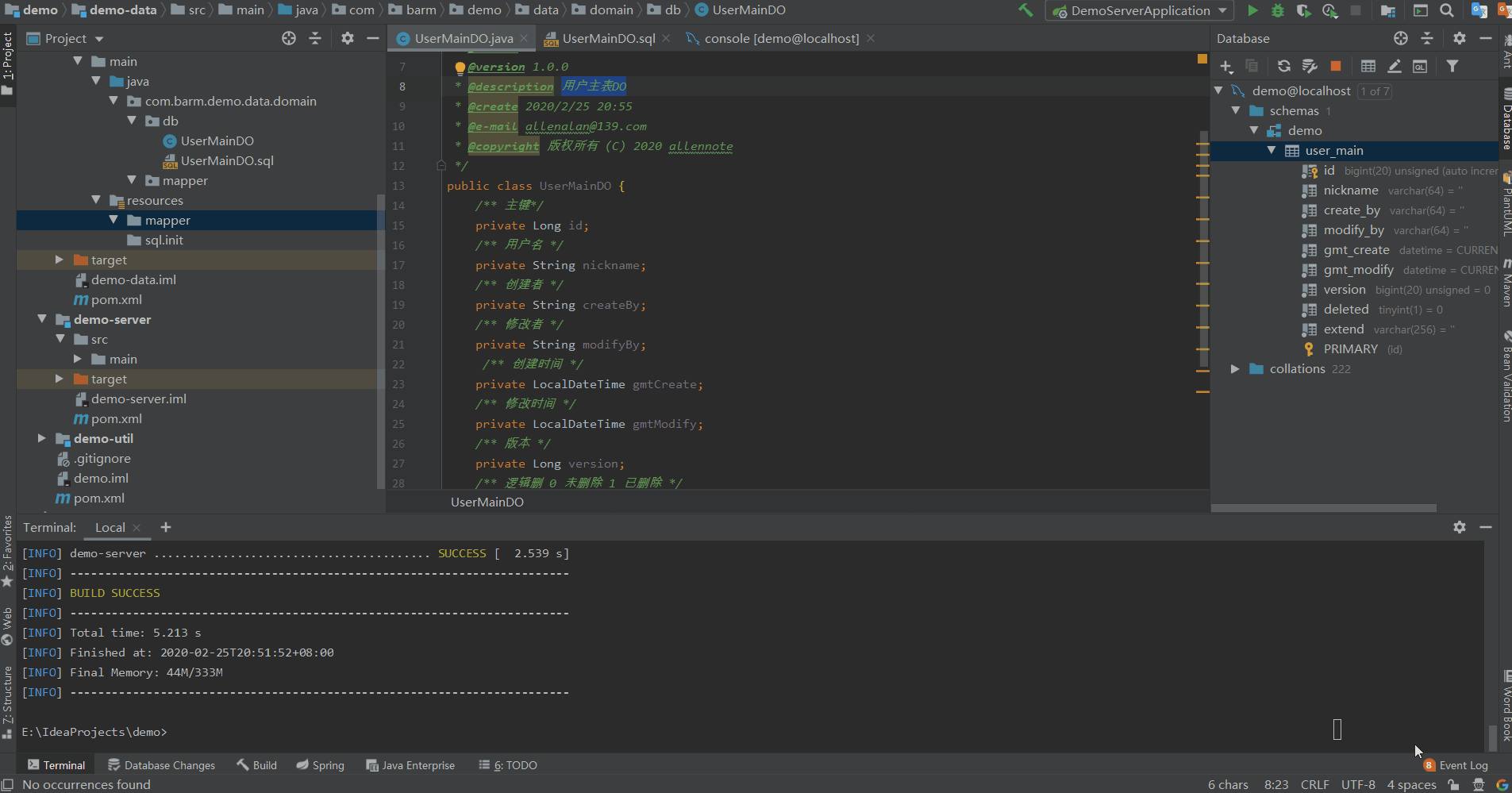 |-- demo-data jar文件 持久层