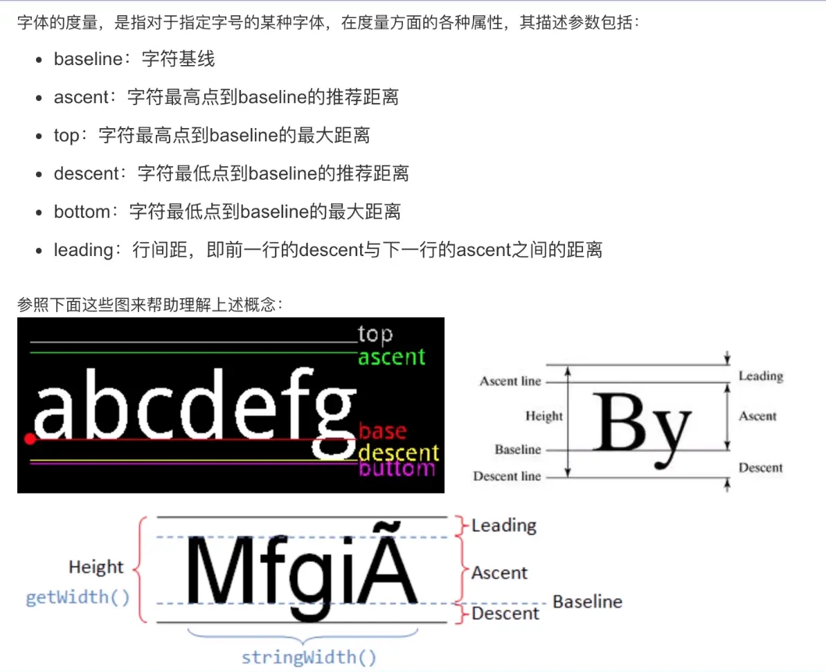mPaint.getFontMetrics(); //获取字体度量对象
