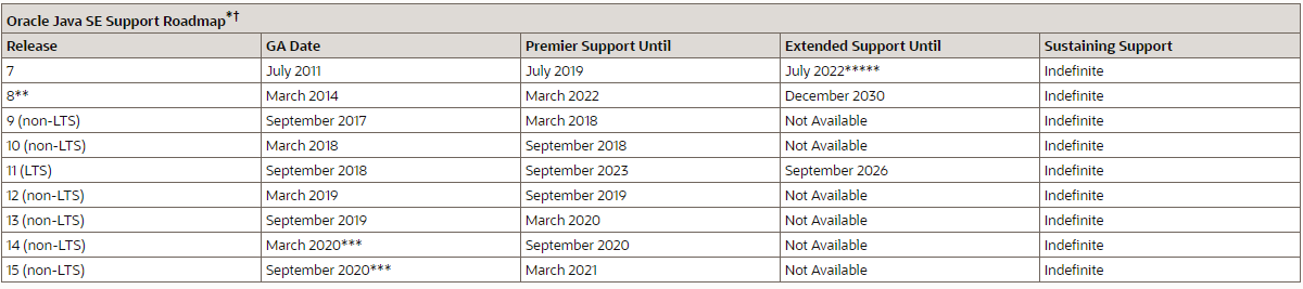 每3年发布一个LTS版本(最新的LTS版本是JDK11)