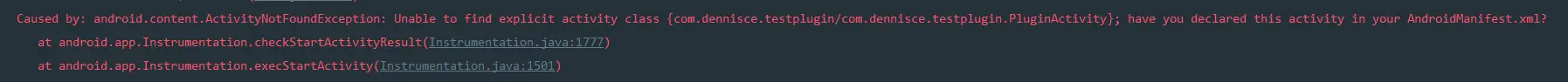 想想确实也是,这个Activity确实没有注册在宿主app的manifest中,要解决这个问题,先找到是哪里抛出的异常?