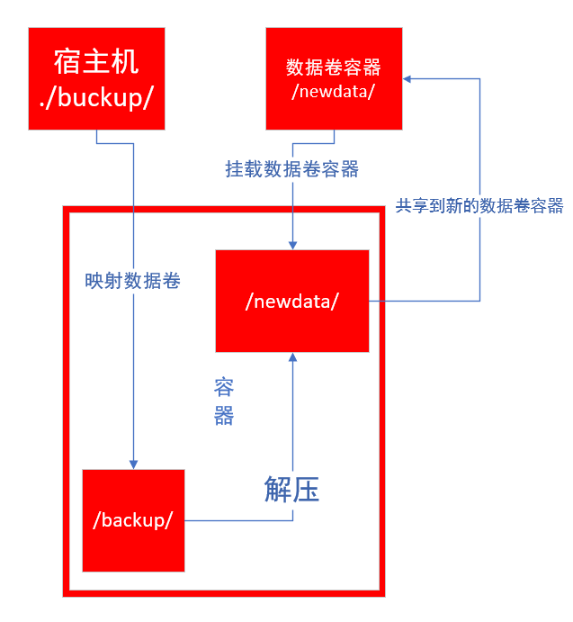 注意:解压的时候,如果使用目录的话,一定要在解压的时候使用 -C 制定挂载的数据卷容器,不然的话容器数据是无法恢复的,因为容器中默认的backup目录不是数据卷,即使解压后,也看不到文件。
