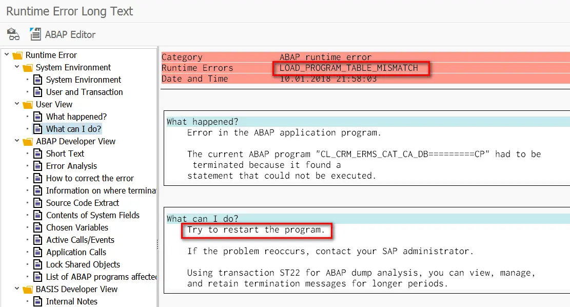 如果正在运行一个transaction,这个时候系统有一个transport request import进来, 这个TR包含了一些DDIC object的change, 并且这些DDIC object正在被当前transaction使用,就会出现这个exception: