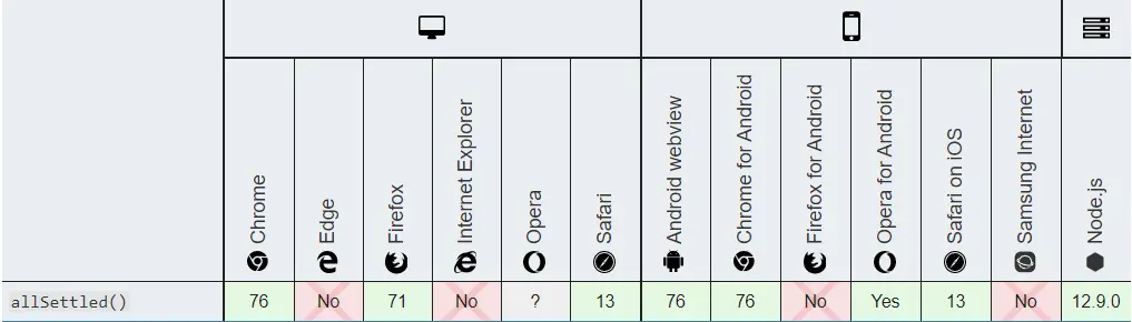 Promise.allSettled的支持情况: