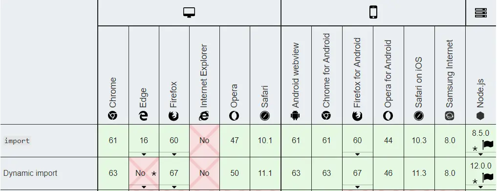 Dynamic import的支持情况: