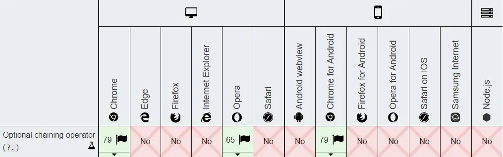 可选链操作符的支持情况: