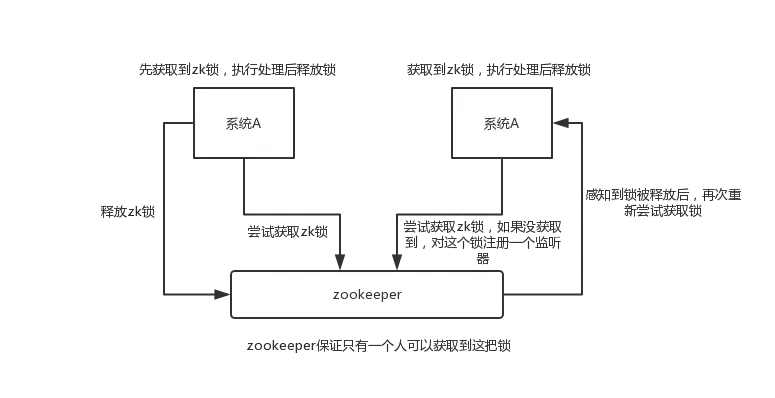 这个其实是 zookeeper 很经典的一个用法,简单来说,就好比,你 A 系统发送个请求到 mq,然后 B 系统消息消费之后处理了。那 A 系统如何知道 B 系统的处理结果?用 zookeeper 就可以实现分布式系统之间的协调工作。A 系统发送请求之后可以在 zookeeper 上对某个节点的值注册个监听器,一旦 B 系统处理完了就修改 zookeeper 那个节点的值,A 系统立马就可以收到通知,完美解决。