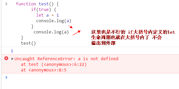 在es6中有个let关键字就可以解决上述的变量提升问题了