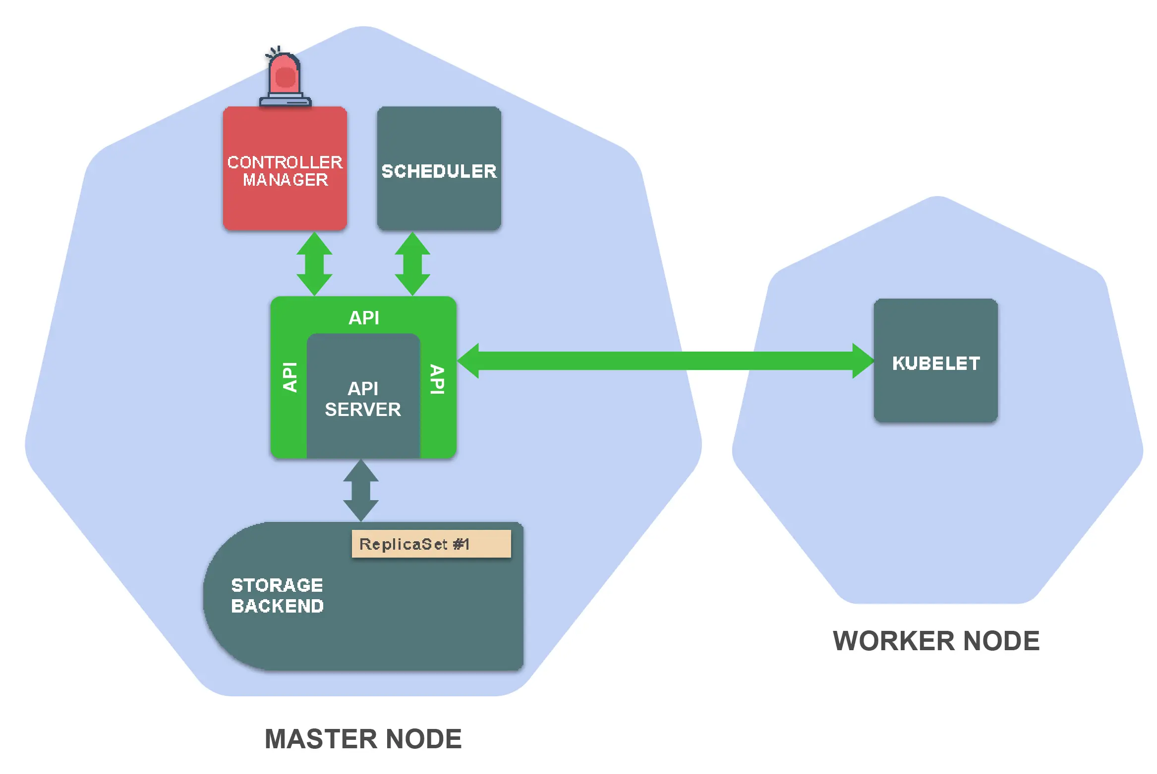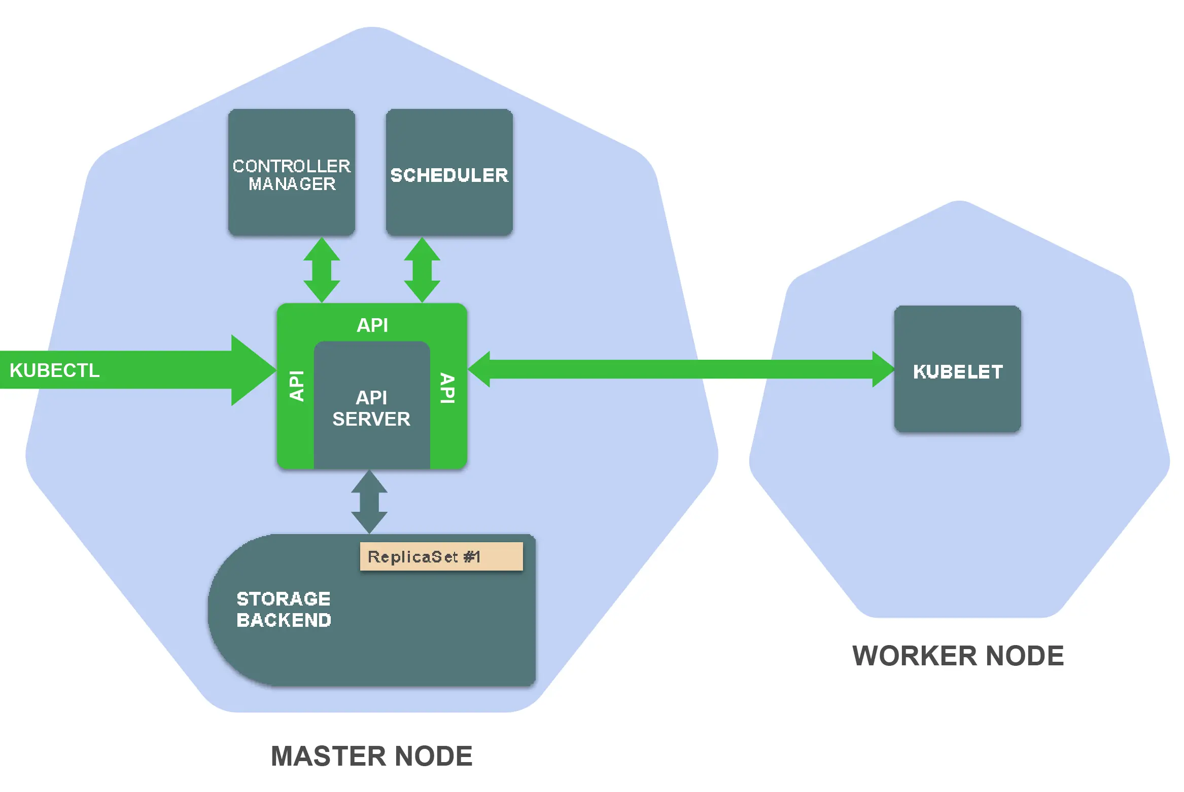 假设你刚刚执行了kubectl create -f replicaset.yaml,此后,kubectl向_create ReplicaSet API端点_发出了HTTP POST请求(传递你的ReplicaSet资源定义)。哪些因素会导致集群中出现这种情况?如下: