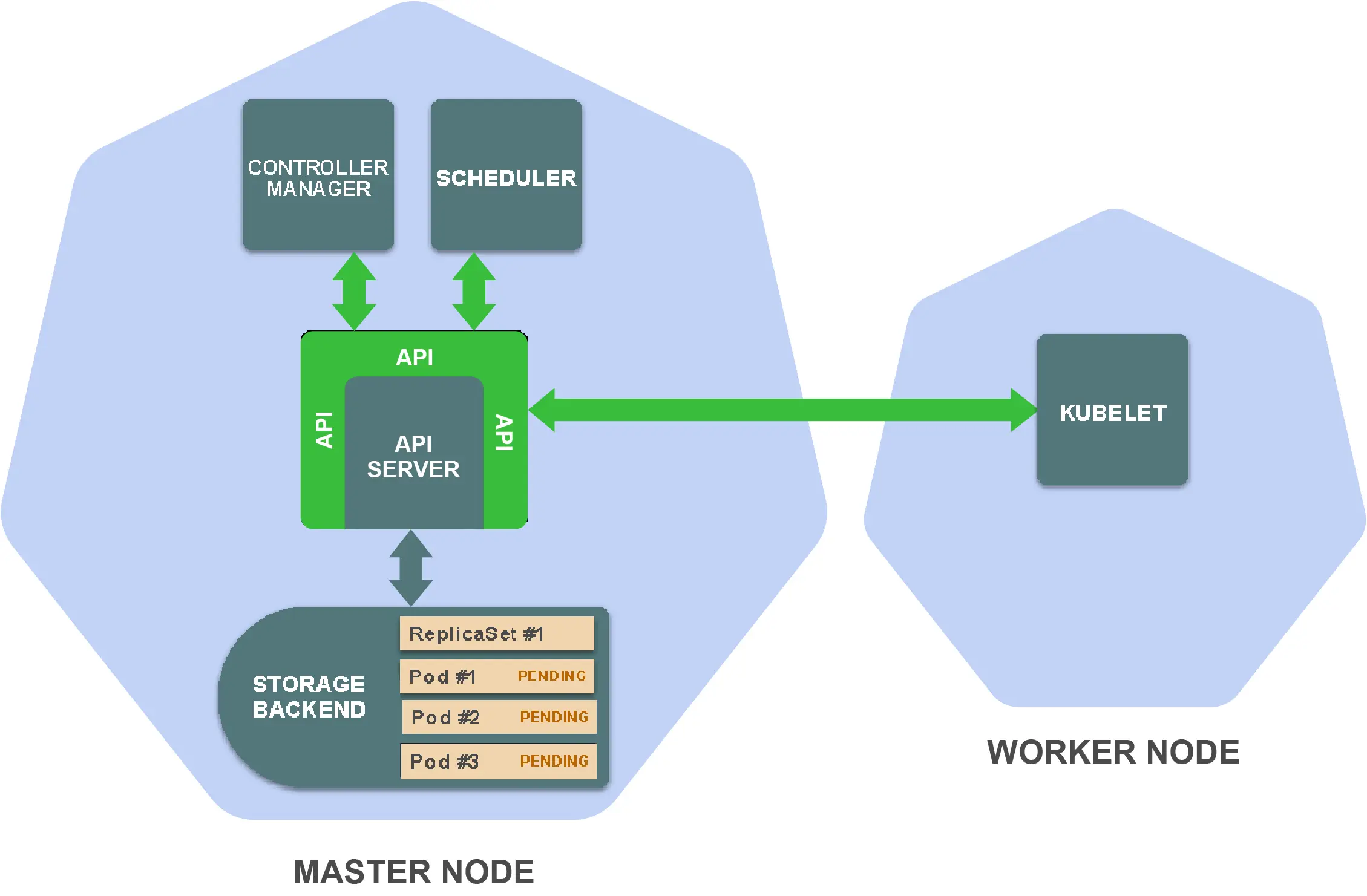 请注意,到目前为止,集群中任何地方都没有运行工作负载的代码。至今,我们所完成的事就是在master节点上的存储后端中创建和更新资源。