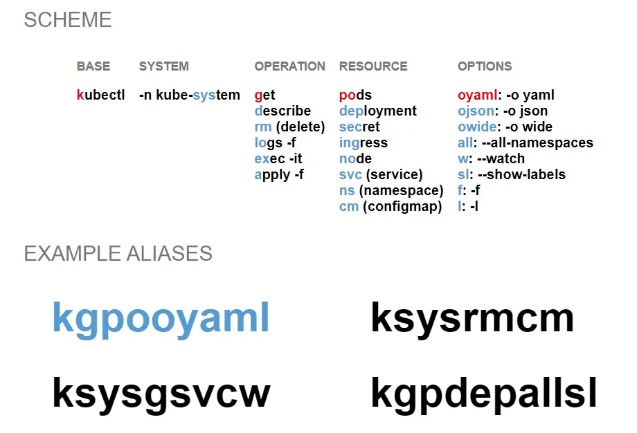 例如,别名kgpooyamlall代表命令kubectl get pods -o yaml --all-namespaces:
