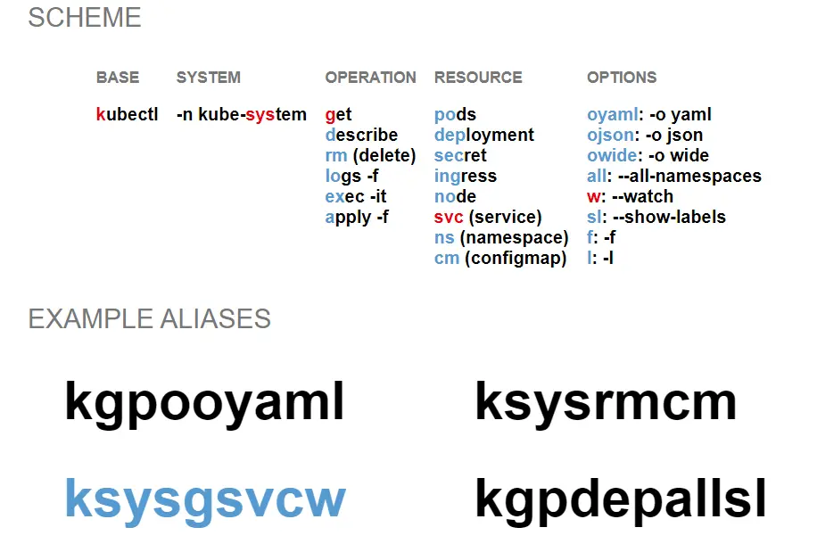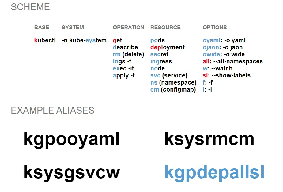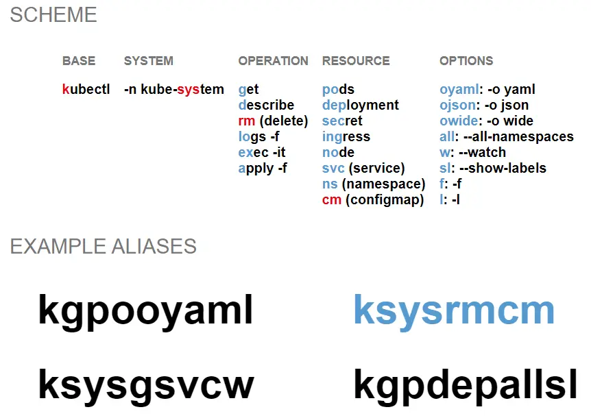 你不需要使用所有组件作为别名。例如,k、kg、klo、ksys或kgpo也是有效的别名。此外,你可以在命令行上将别名与其他单词组合在一起。