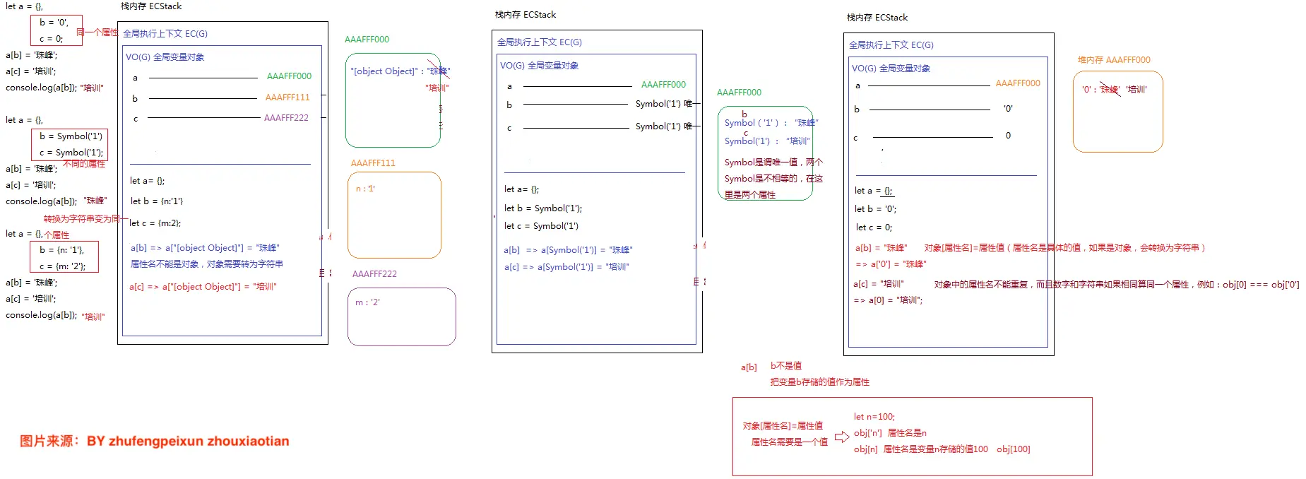 obj[n] = "张三"; //=>obj[{x:100}] 但是对象不能作为属性名,需要把其转换为字符串 =>{"[object Object]":"张三" }