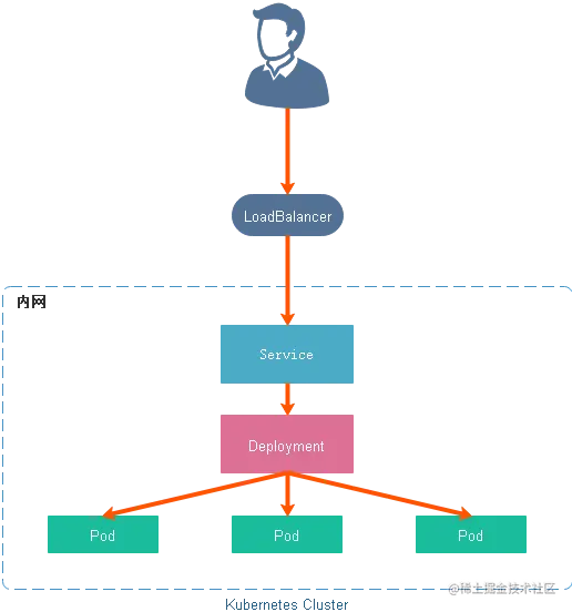 LoadBalancer 服务是暴露服务到 Internet 的标准方式。所有通往你指定的端口的流量都会被转发到对应的服务。它没有过滤条件,没有路由等。这意味着你几乎可以发送任何种类的流量到该服务,像 HTTP,TCP,UDP,WebSocket,gRPC 或其它任意种类。