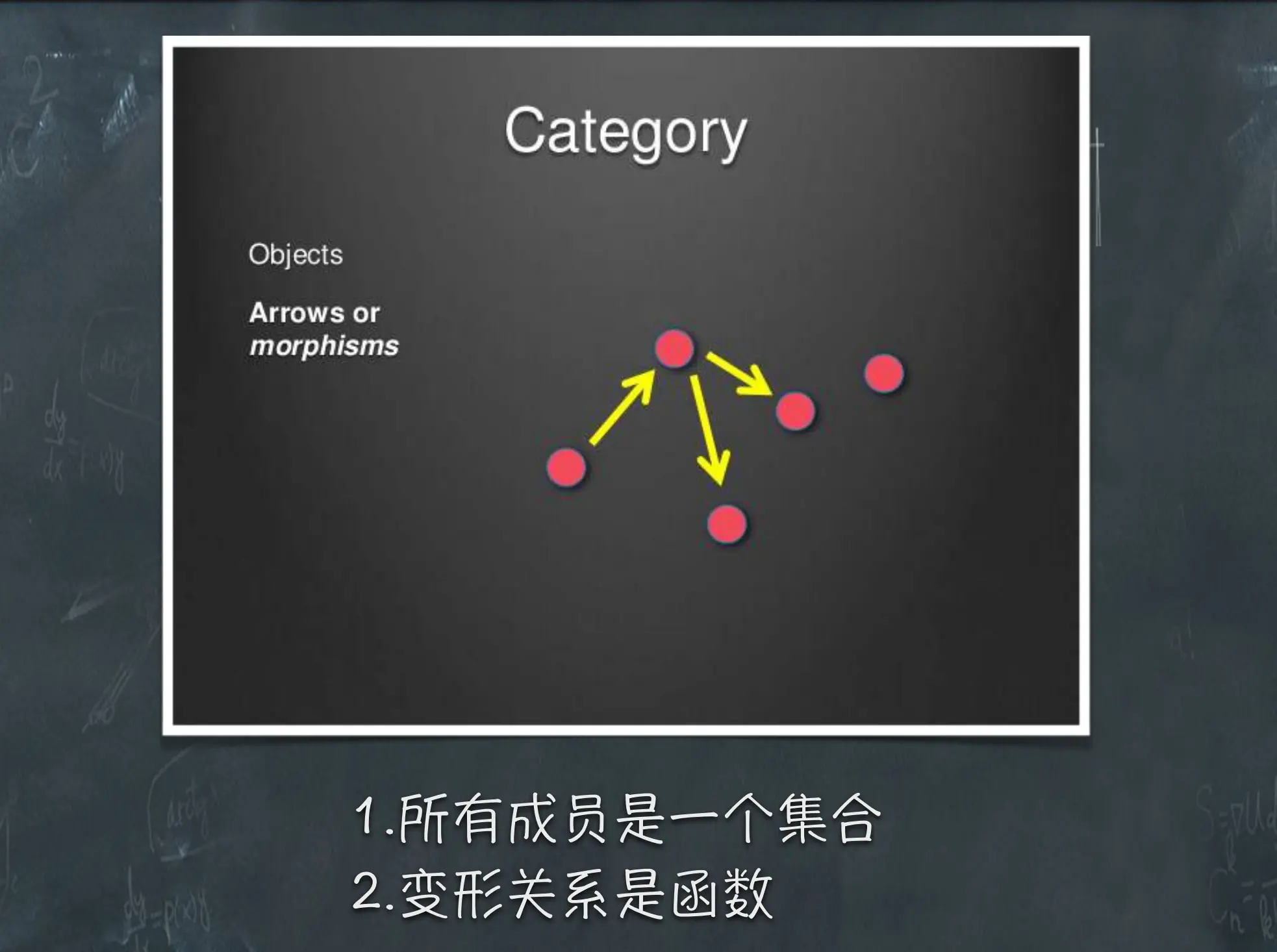 函数式编程是范畴论的数学分支,是一门很复杂的数学,认为世界上所有概念体系都可以抽象出一个个范畴。- 彼此之间存在某种关系概念、事物、对象等等,都构成范畴。任何事物只要找出他们之间的关系,就能定义 。