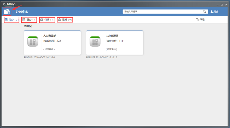 办公中心用于查阅您您待办或已办事项,发起新的流程任务等。