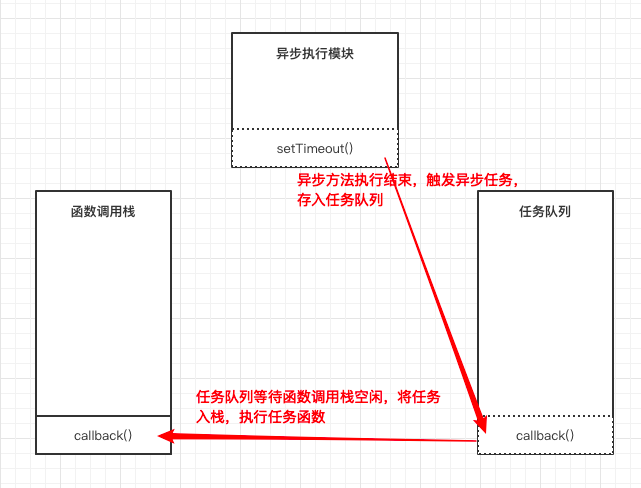 在调用栈-异步模块-任务队列模型中,上述代码的执行过程如下:
