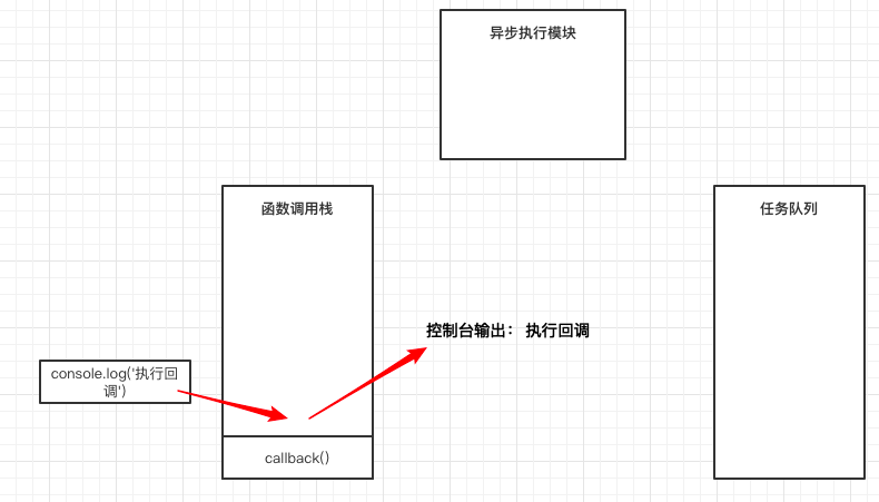 第七步,进入callback()回调中,将console.log('执行回调')入栈执行,所以在控制台输出执行回调,如图: