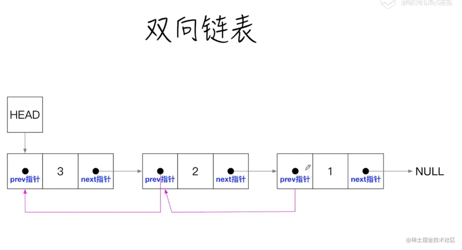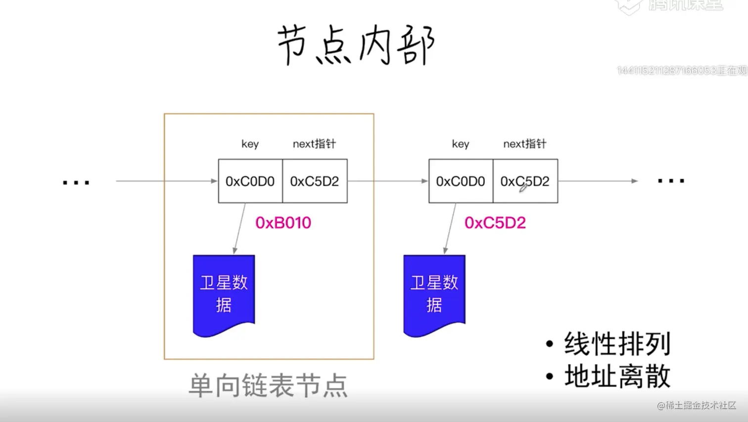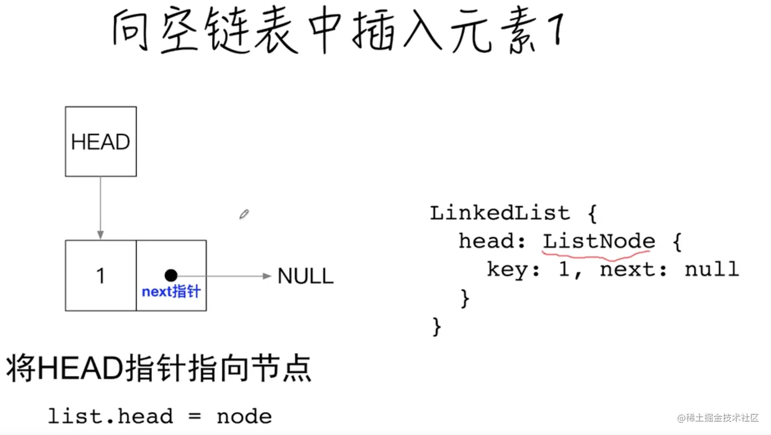 linkedList链表中,head指向listNode,其中包含 key和next指针