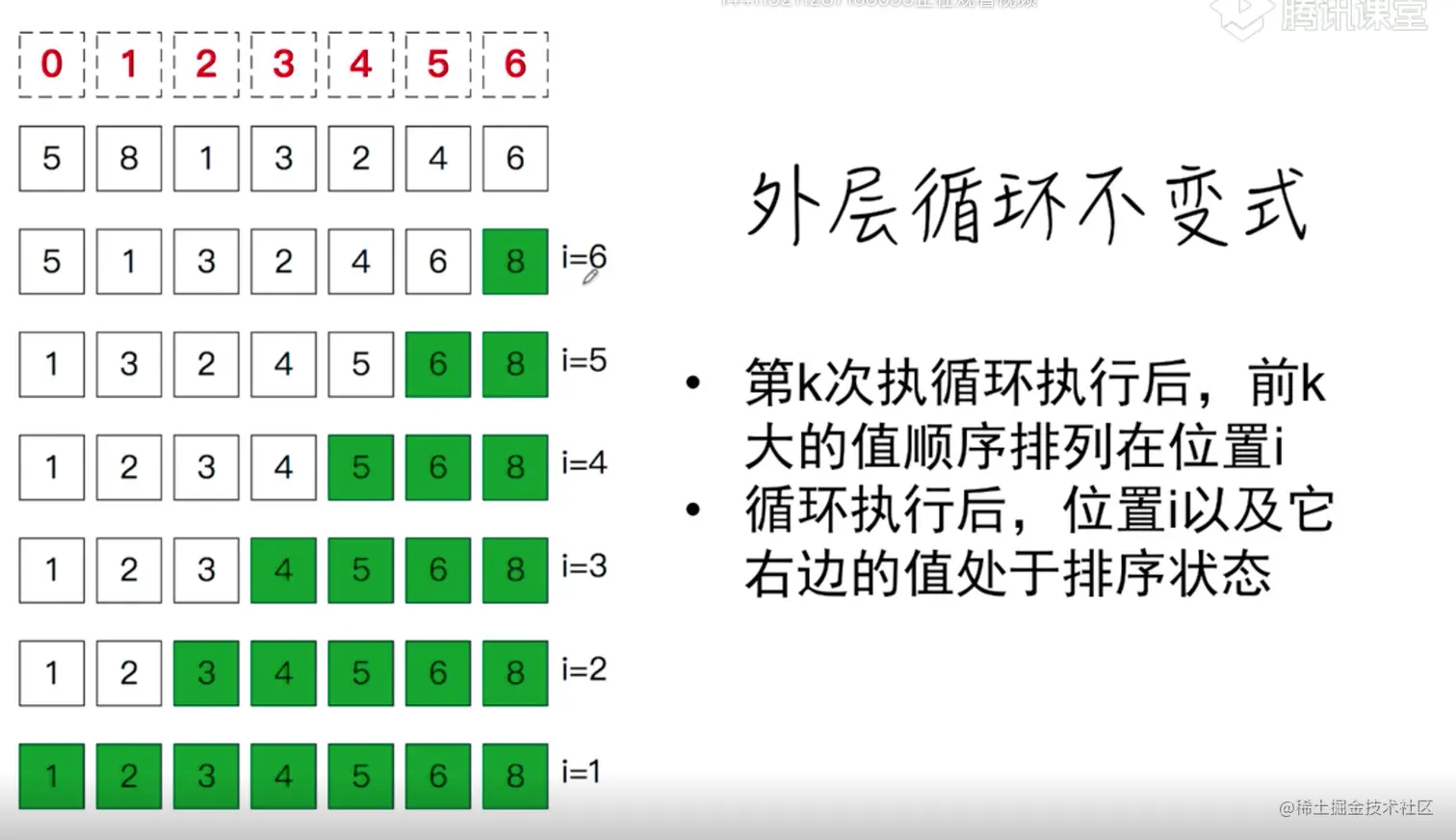- 2.插入排序 核心:循环不变式,p指向下一个要比较的元素,p+1指向腾出来的空位, while(A[p]>x(插入的元素)) ,则比较的元素A[p]前进一位,把原来A[p]赋值给A[p+1],否则把A[p+1]=x