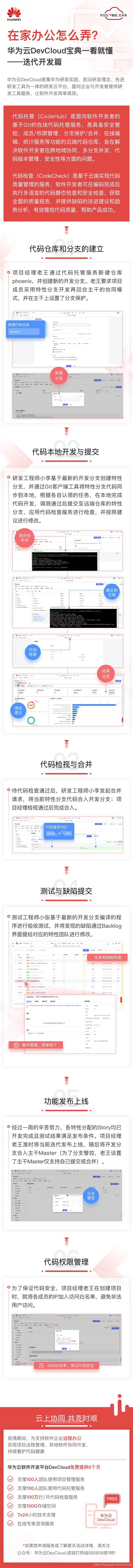 【华为云技术分享】在家办公怎么弄?华为云DevCloud宝典一看就懂——迭代开发篇 华为云开发者社区精选 2020-03-04 181 阅读1分钟 最近一段时间,在家远程办公成为软件开发者的工作常态,如何在家实现异地协同,高效开发?本篇将继续介绍如何使用华为云DevCloud提供的代码托管和代码检查服务进行需求的迭代开发,想快速上手项目开发么?请您收好以下宝典! 往期回顾:华为云DevCloud宝典——项目管理篇 开发者沙龙正在直播2月28日-3月28日