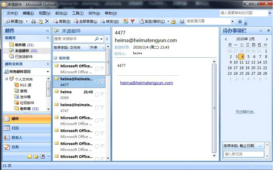 通过对比,个人感觉foxmail不如outlook稳定,并且收件较慢。
