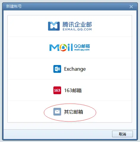安装完成后,设置邮件账号,选择“其他邮箱”