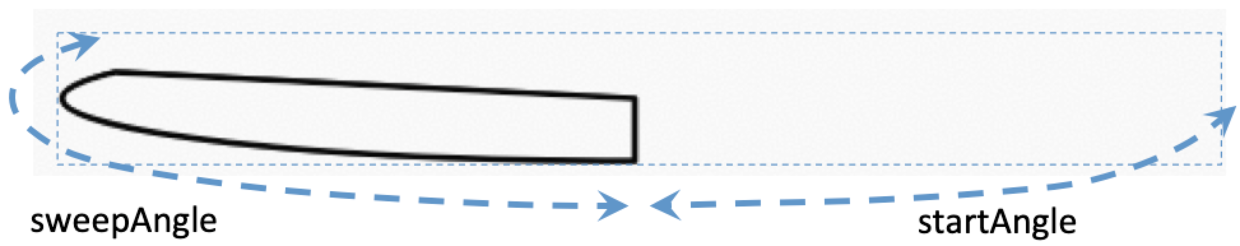 对于startAngle,将rect的中间端作为起点,即顺时针90°。从那里开始,startAngle被认为是0°。然后从startAngle计算sweepAngle。两者都使用角度度°值。