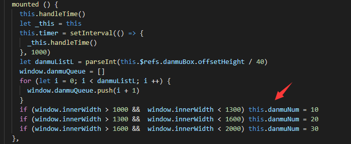 这是一个定时器,它每两秒会发送一条弹幕,首先我们需要定义一个index来保存当前发送弹幕的数量,存在vue实例上就行,然后每次发送弹幕前,先判断弹幕数量是否为0或者是否弹幕已经发送完,如果还有弹幕需要发送,那我们就可以进入下一步了:准备跑道