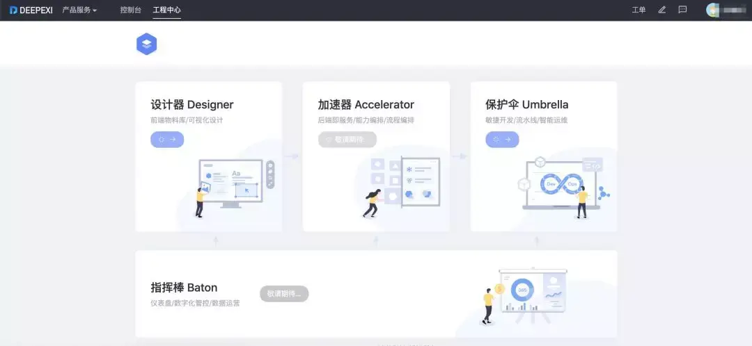 cloud.deepexi.com云上软件制造工厂:对DEEPEXI系列全线产品的工程进行统一管理,让企业和用户对于工程资源的统一管理更加便捷、更加全面、更加高效能。